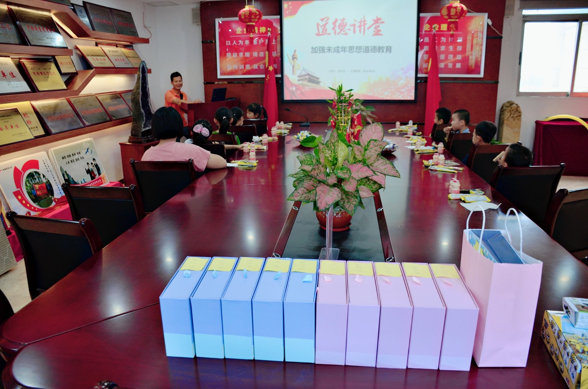 1.道德讲堂 2019年6月1日早上,小朋友们兴高采烈的来到公司多功能会议室,端坐桌前,认真聆听由集团党支部副书记、集团副总经理兼项管中心负责人欧才云演讲关于思想道德教育的一个小课堂。演讲过程中,进行了随堂提问,每一位小朋友都积极举手发言,表现非常的棒。 ![]()